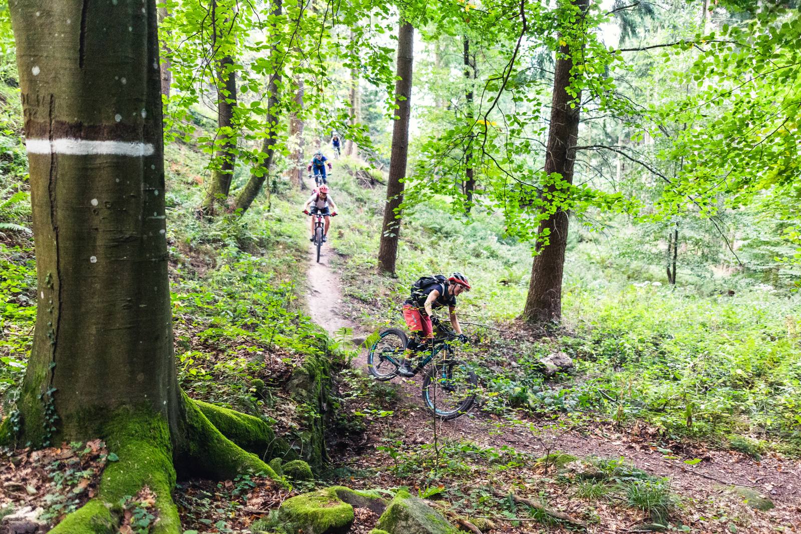 Mittelschwere Singletrail-Touren. Bei grösseren Gruppen wird ein zweiter Guide eingesetzt und es können unterschiedliche Levels gefahren werden.