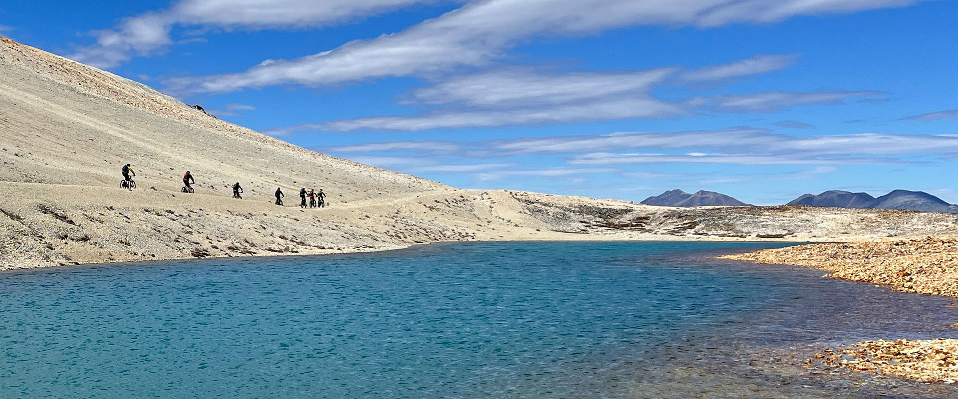 Letztere begleiten uns an diesem abwechslungsreichen Biketag und bieten eine perfekte Kulisse. Lassen wir uns verzaubern von der hügeligen Steppenlandschaft, rauschenden Wasserfällen, bizarren Felsformationen, blaugrünen Gletscherseen und vereisten Berggipfeln!