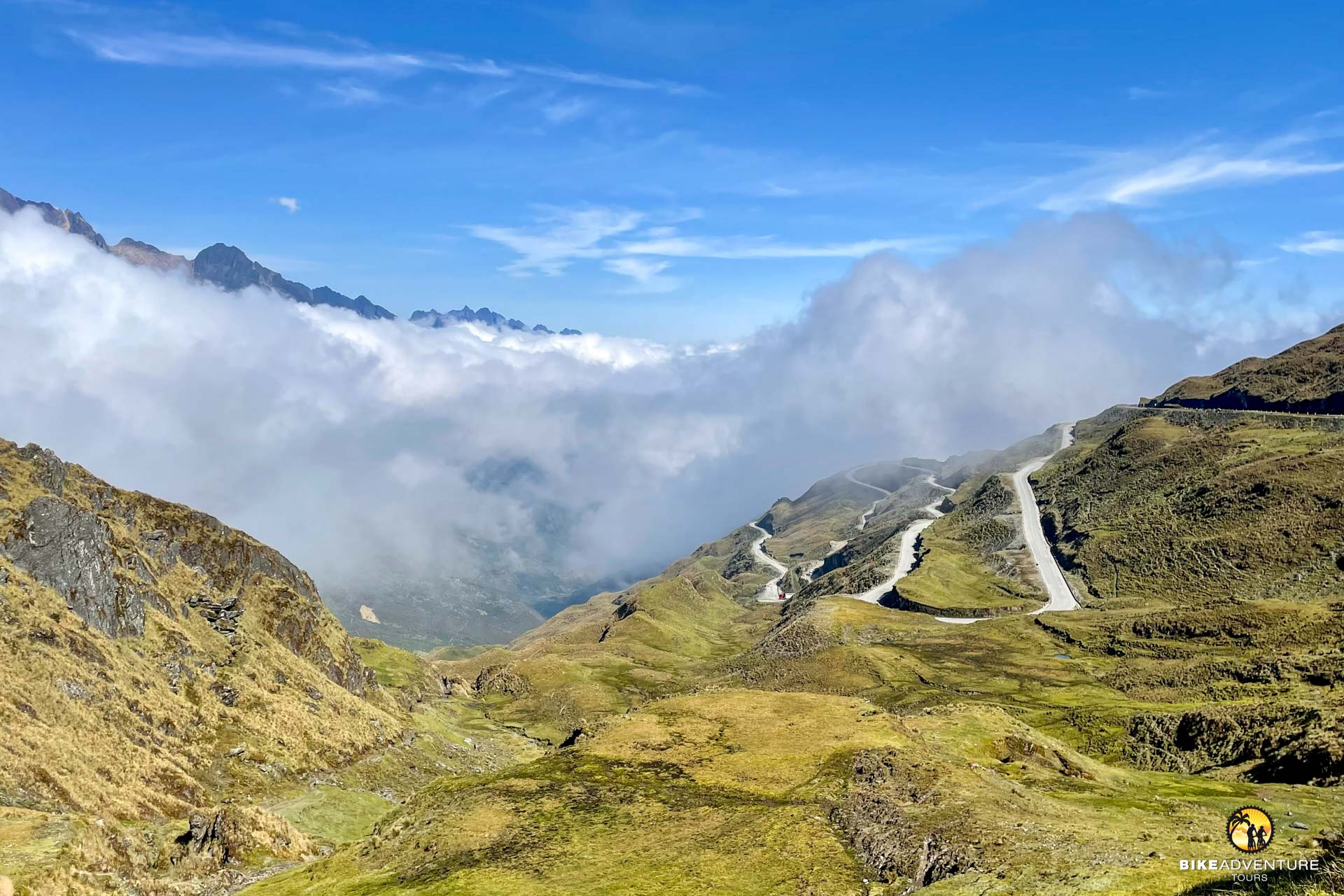 Auf der Passhöhe des Abra de Malaga (4350 m) starten wir in den wohl längsten Downhill der Welt. Die ersten 55 Kilometer geht es ohne eine Gegensteigung einfach immer nur runter. Es wird immer wärmer, feuchter, grüner und tropischer – eine Bikefahrt aus den Anden in den Dschungel. Der zweite Teil wird etwas anstrengender. Wir meistern einige Höhenmeter, aber hier auf nur noch knapp 1000 Metern, fliegen wir nur so dahin.