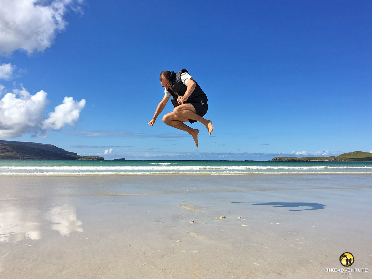 Wenn wir auf der Tour sind, ist das Wichtigste, «eins über den Durst zu trinken». Das heisst, bevor du eigentlich Durst hast, bereits etwas trinken und den Tank laufend präventiv füllen. Isotonische Getränke sind sehr wertvoll, deshalb haben wir meistens auch in Pulverform davon dabei. In Marokko ist es eher ein frischer Minzentee, in Slowenien ein Radler. In Schottland ist es vielleicht mal gegen den Schluss ein «half and half». Was das genau ist, verrate ich hier nicht. Wen es interessiert, kommt am besten mal mit. Und was auch super funktioniert ist direkt vom Brunnen bei uns in den Alpen unser wunderbar, frisches, klares Bergquell-Wasser.